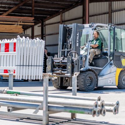 Über unser Service- und Logistikzentrum in Abensberg unterstützen wir unsere Bauprojekte mit Material, Geräten, Maschinen und Fahrzeugen. Die hohe Verfügbarkeit eigener Ressourcen macht uns schlagkräftig, flexibel und zuverlässig.