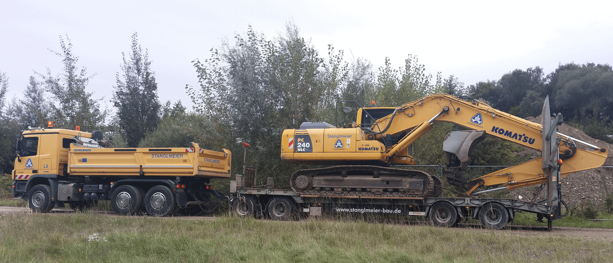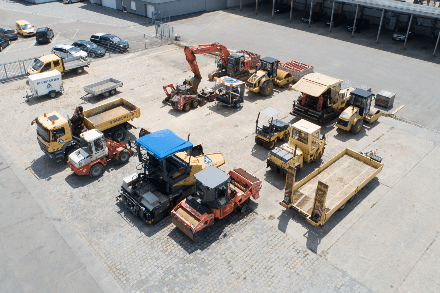Ca. 100 Baumaschinen – wie Bagger, Radlader, Raupen, Walzen, Kräne, Asphaltfertiger – sowie eine umfangreiche Baustellenausstattung mit Schalungen, Gerüsten und Werkzeugen bilden das technische Equipment, damit unser Fachpersonal die Herausforderungen auf den Baustellen sicher und qualitativ hochwertig meistern kann.