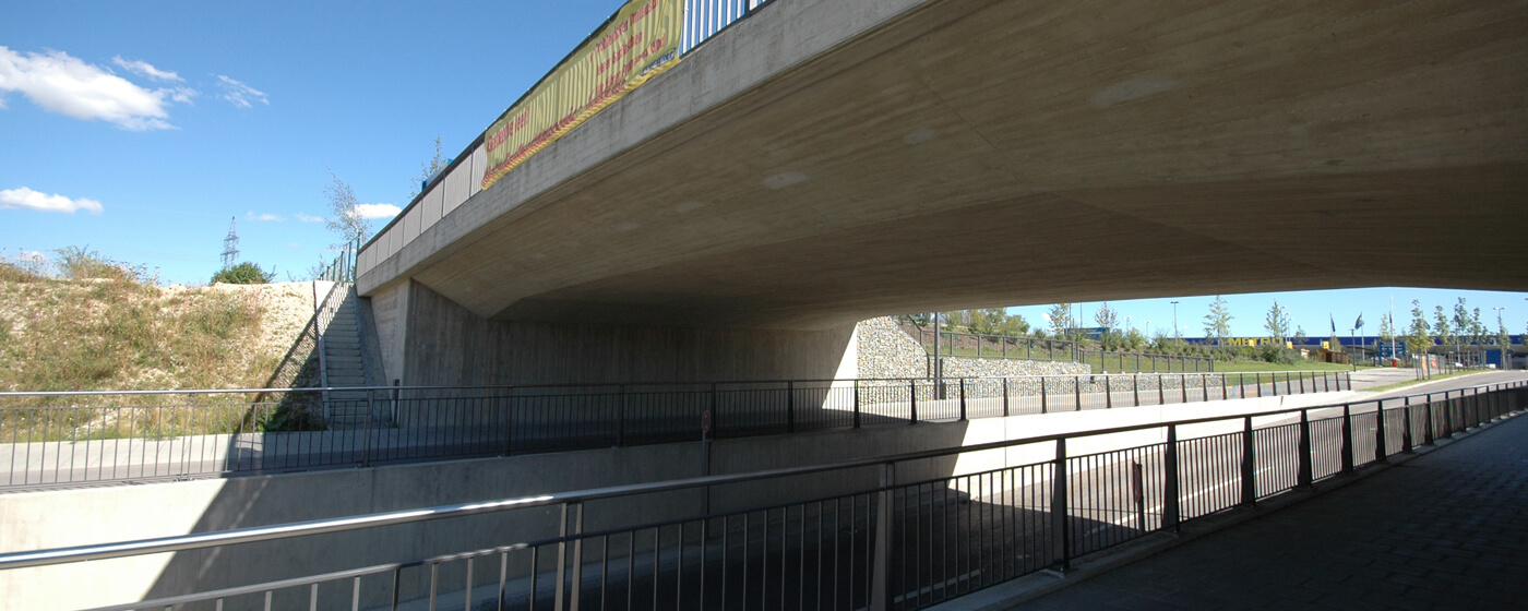 Im Zuge von Erschließungsmaßnahmen an der Bodenseestrasse in München- Pasing, musste die bestehende Eisenbahnbrücke mit einer wasserdichten Grundwasserwanne unterquert und an eine neue Pumpstation angeschlossen werden. Eine weitere Maßnahme war ein Brückenbauwerk in Ortbetonrahmen-bauweise parallel zur bestehenden Eisenbahnüberführung.